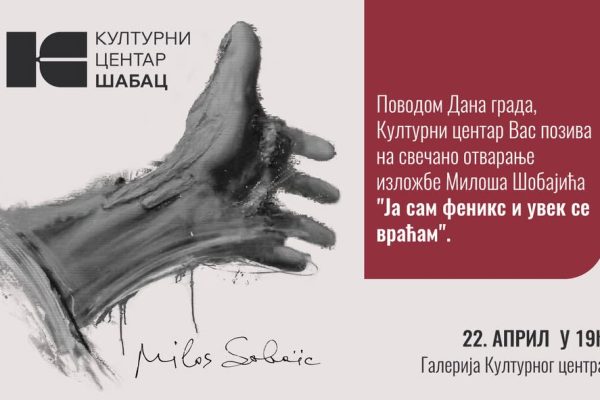 Cреда, 19:00Поводом Дана града, Културни центар Вас позива на свечано отварање изложбе Милоша Шобајића "Ја сам феникс и увек се враћам". Среда, 22. април у 19.00…